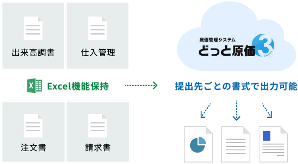 周辺の業務システムとデータ連携することで原価管理だけではなく全社的な業務負荷を軽減します。