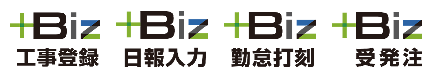 +Bizシリーズはスマートフォンから操作でき、日報管理や勤怠打刻、工事情報の登録・確認などが可能です。
