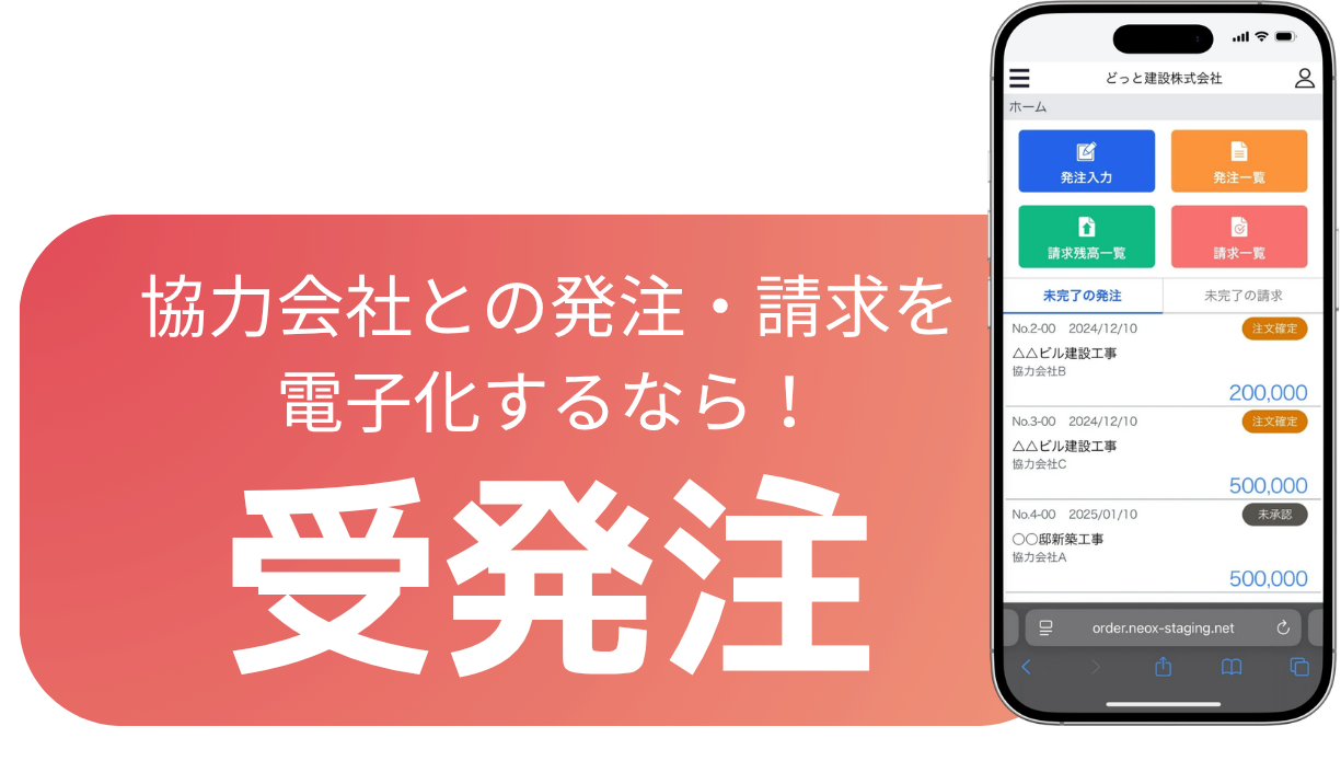 - 協力会社との発注・請求が簡単操作で電子化!