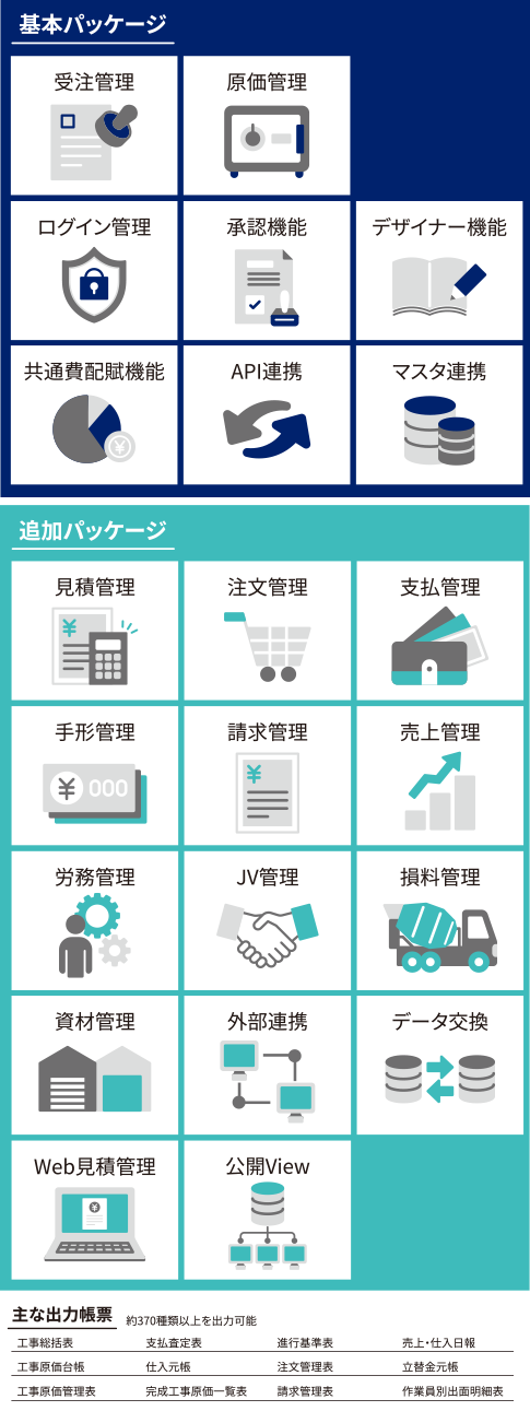 「LA-cPRO工事原価Next」は、原価管理・予算管理を中心に、多彩なオプションやシステムを提供し、高い操作性でスピーディーな意思決定とデータ収集を支援します。