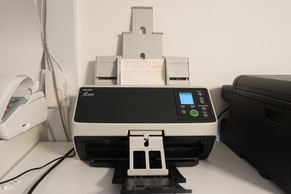業務用スキャナーの「RICOH fi-8190」は大量の証憑の読み取りもスムーズで助かっていますが、まとめて大量処理する際に紙が飛んでしまうことがあり困っていました。スタッカーサポーター(排紙トレイで紙の飛散を防ぐ補助部品。スキャナーに標準で付属)を提案いただき、今後は活用していきたいと思います。