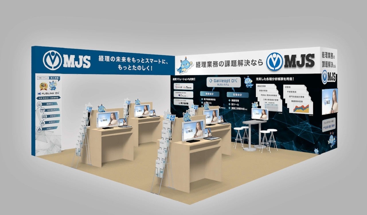 本展示会でMJSは、企業内の全体業務最適化、経理事務省力化、決算早期化に貢献できる中堅企業向けERPシステム『Galileopt DX(ガリレオプト ディーエックス)』や、AI解析による入力支援機能を搭載した証憑書類保管・電子契約クラウドサービス『MJS e-ドキュメントCloud(エムジェイエス イー ドキュメント クラウド)』などをご紹介します。