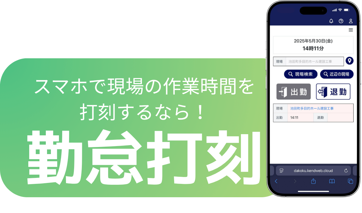 - GPSで工事を簡単に検索。工事ごと現場の入・出退記録を外出先から入力可能!