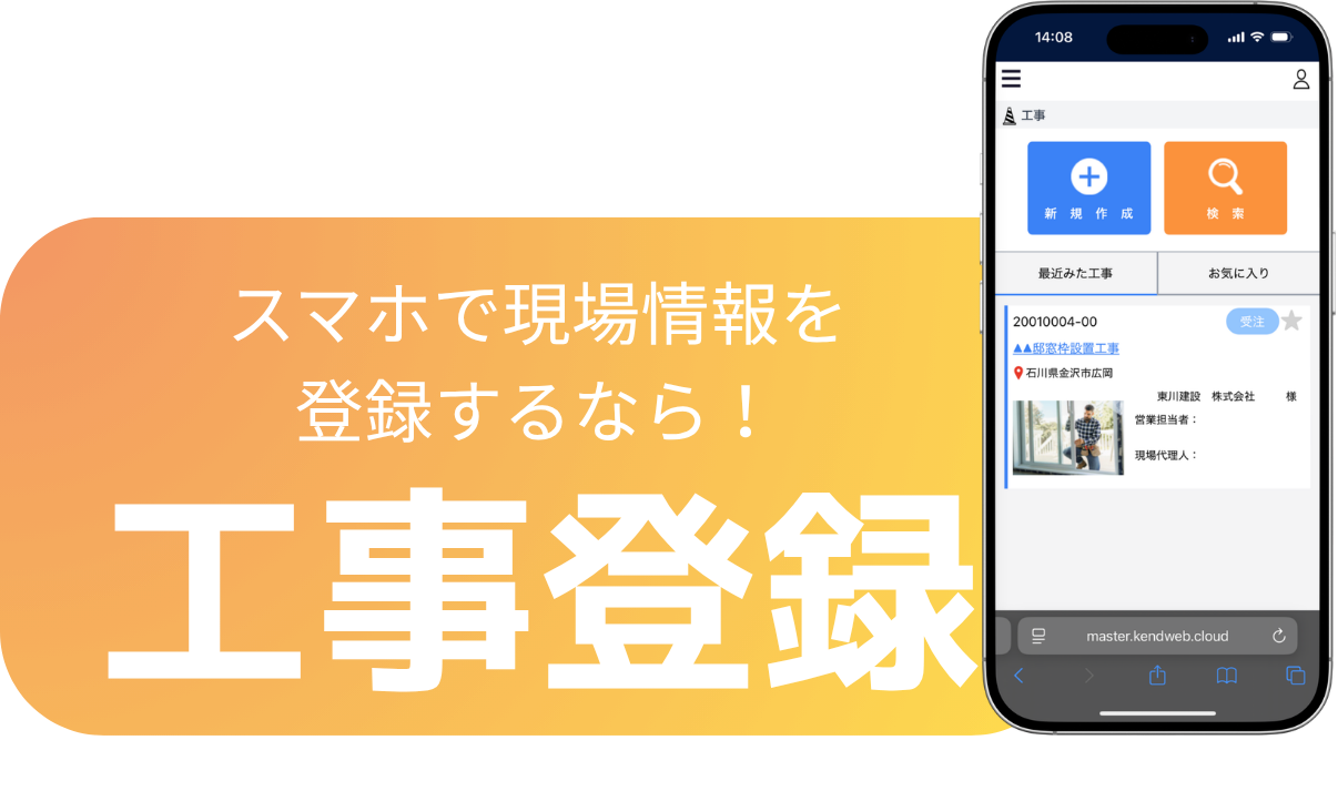 - 現場からスマートフォンで工事&対応記録登録!