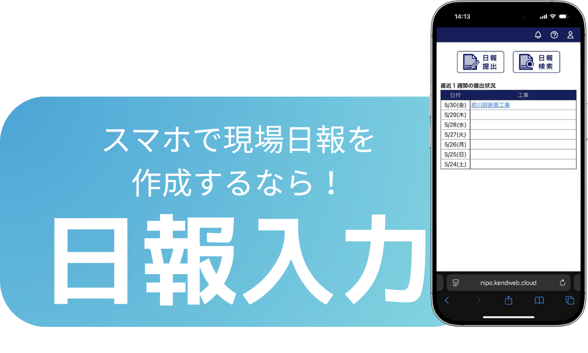 現場日報をスマホやタブレットで作成することができます。